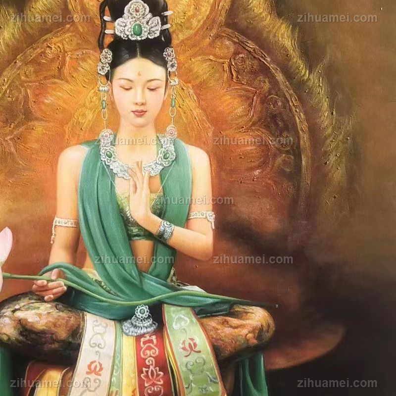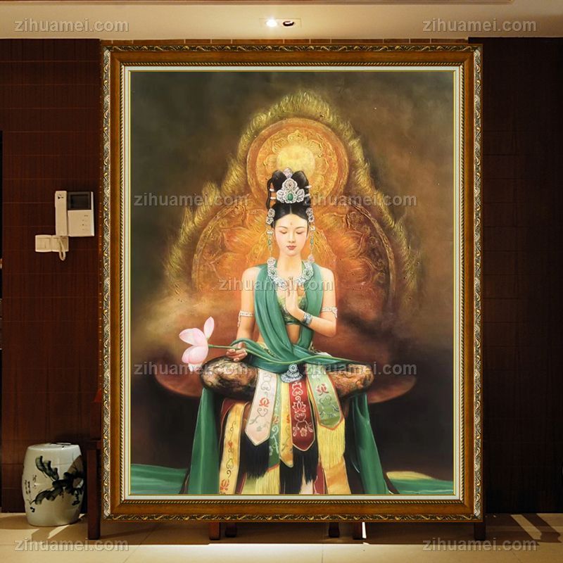 适合客厅大厅的人物油画菩萨图