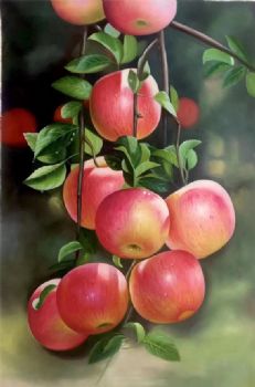 写实苹果油画新中式水果静物油画纯手绘油画 手绘