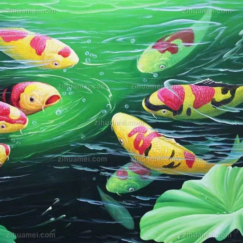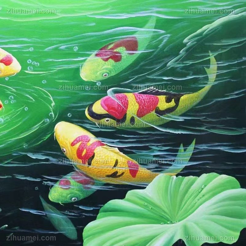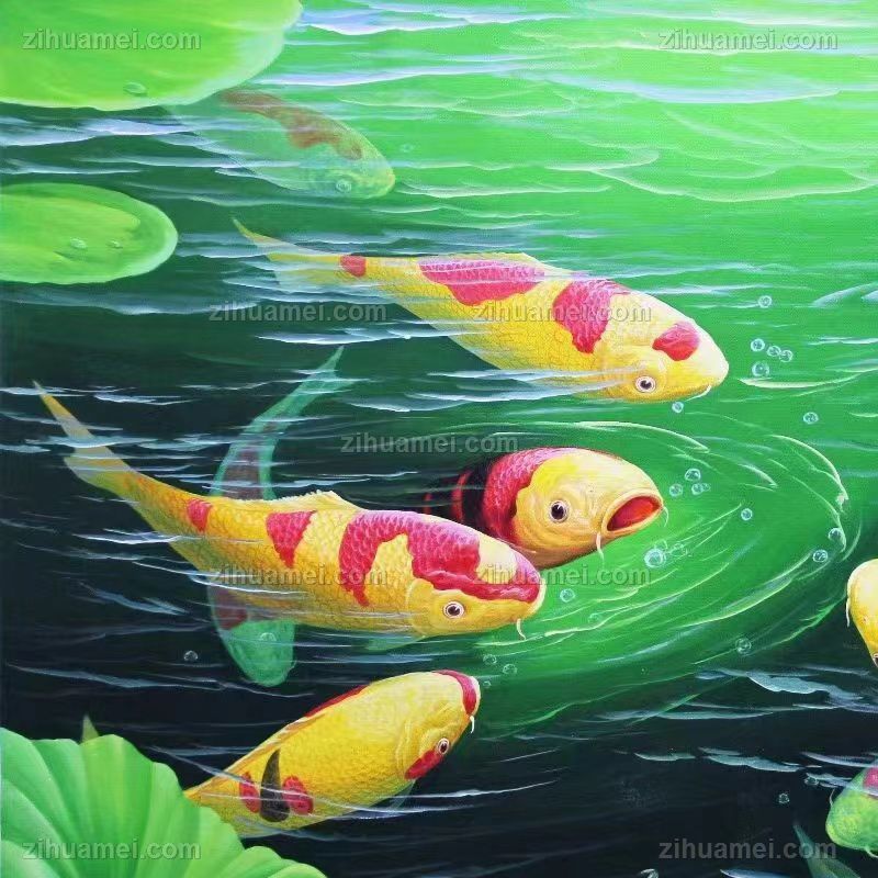 锦鲤写实荷花风景油画
