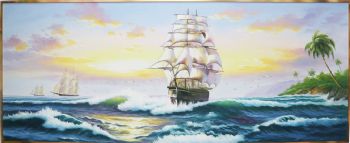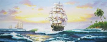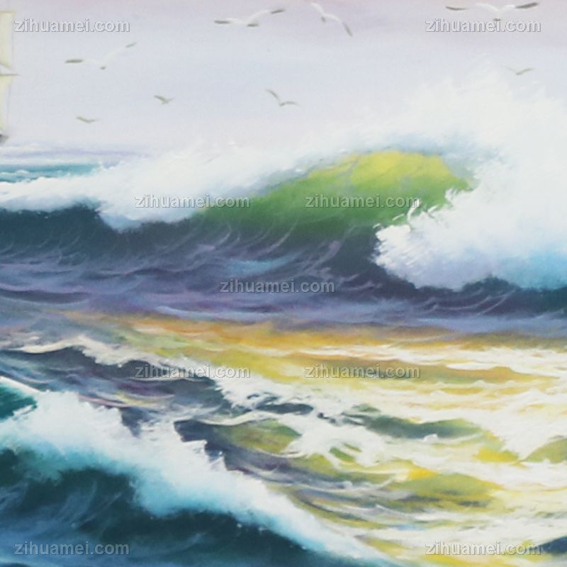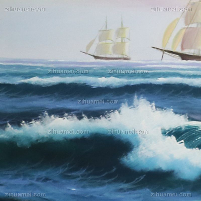 一帆风顺精品海浪帆船风景油画纯手绘油画 手绘
