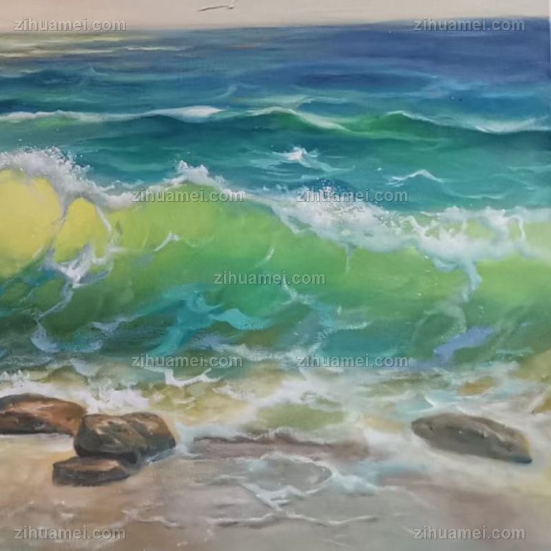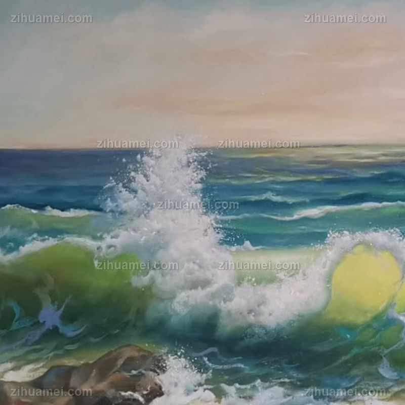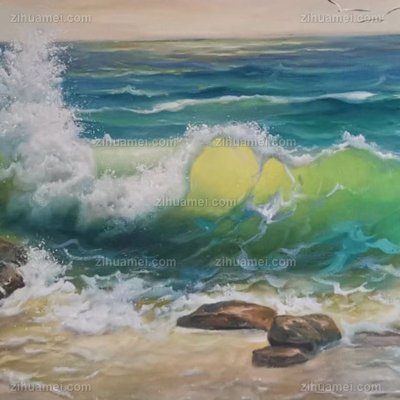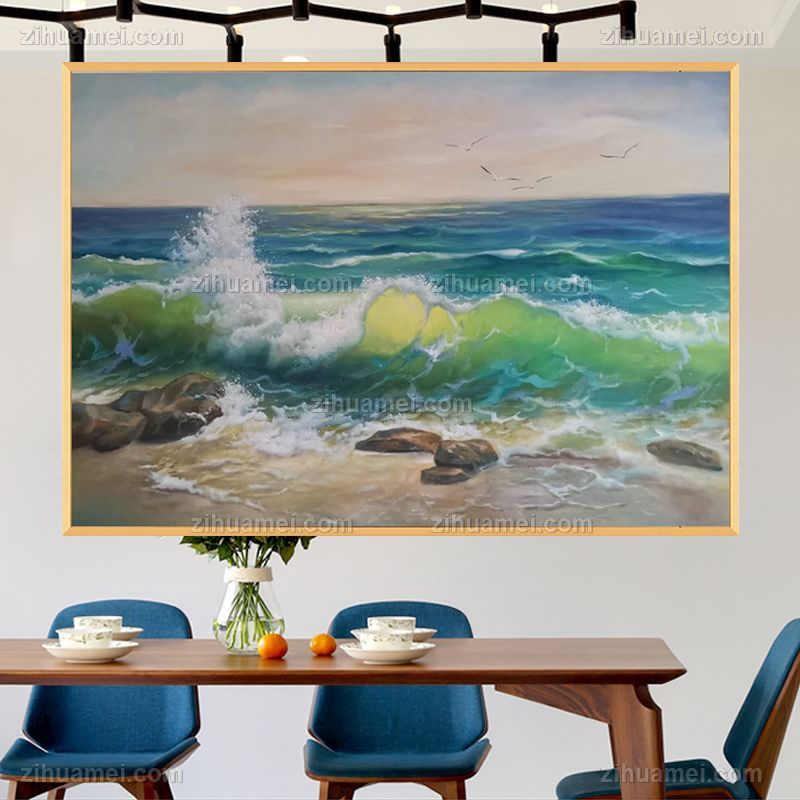 纯手绘海浪风景油画适合办公室茶室的风景油画 手绘