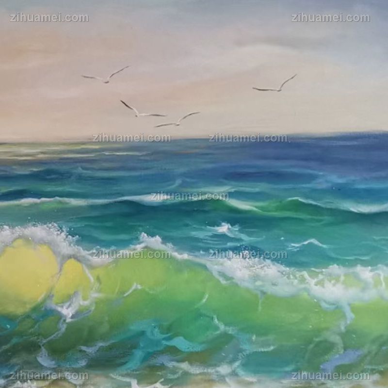 方形海浪风景油画纯手绘现代装饰油画 手绘