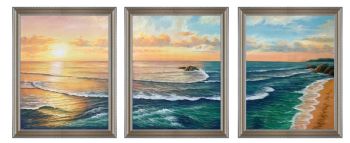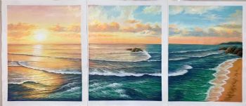 • 三联画海浪油