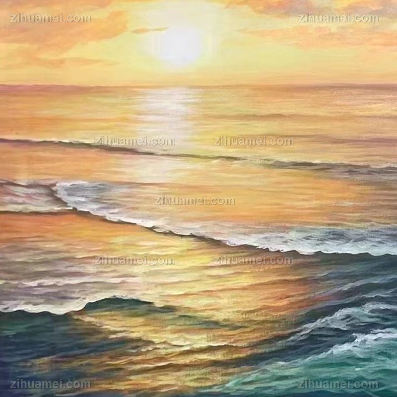 方形海浪风景油画纯手绘现代装饰油画 手绘