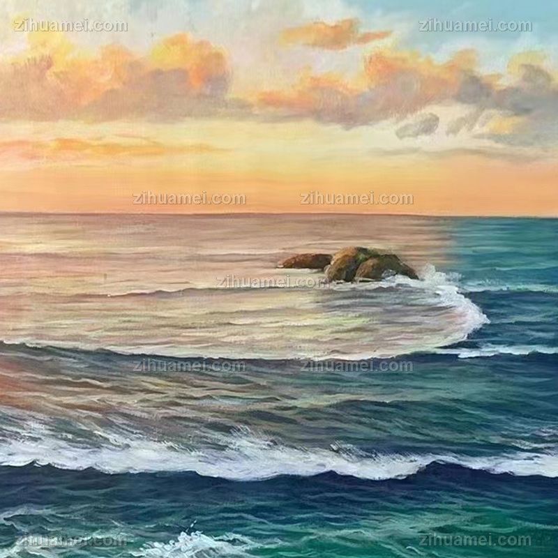 纯手绘海浪风景油画适合办公室茶室的风景油画 手绘