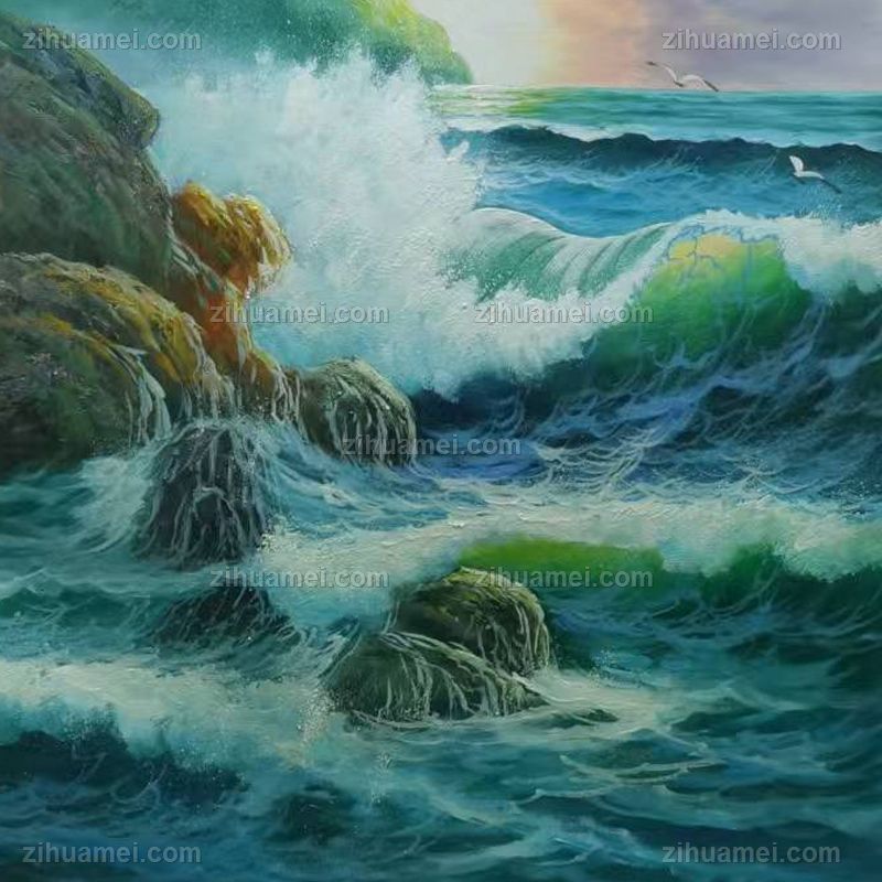 • 纯手绘油画海浪画