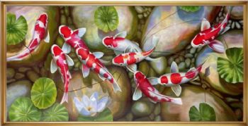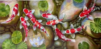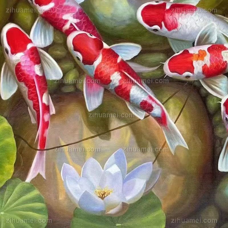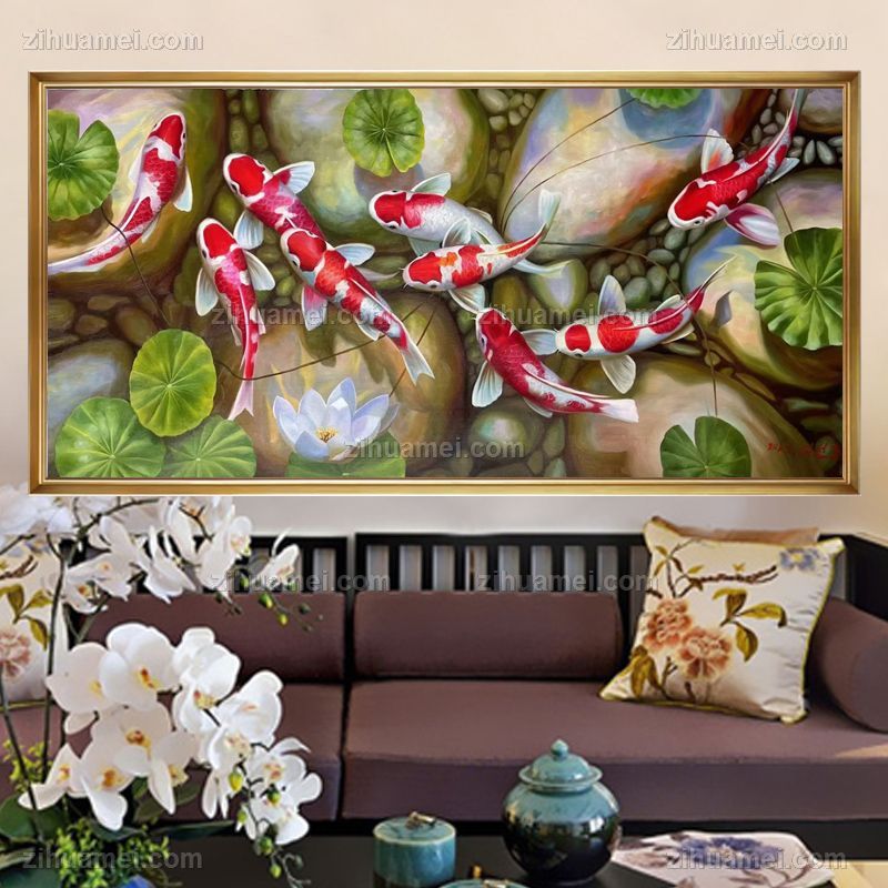 • 适合客厅餐厅的锦鲤油画