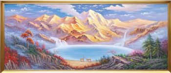 新中式金山聚宝盆风景油画