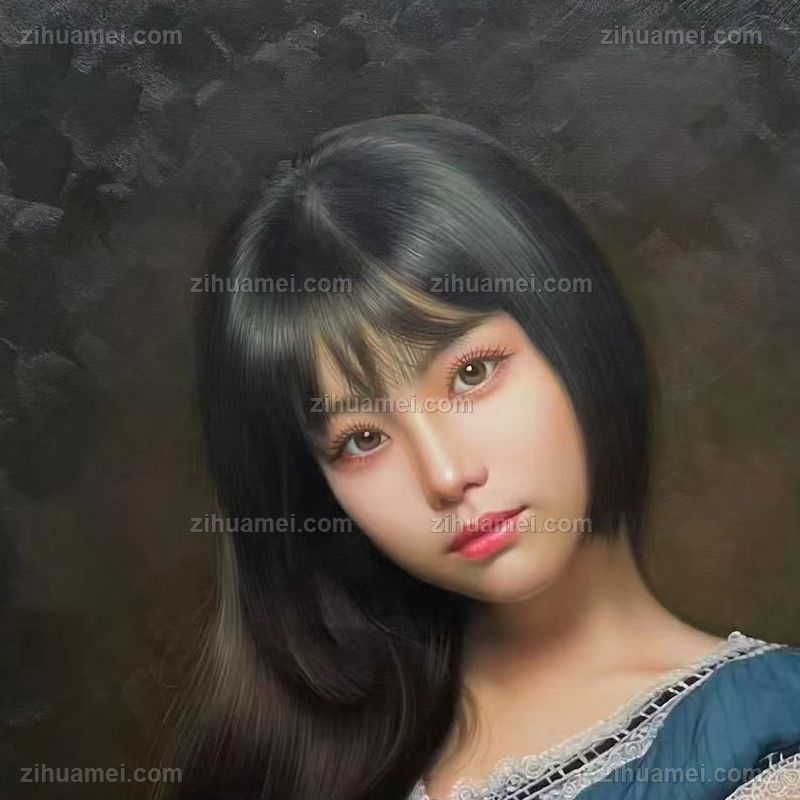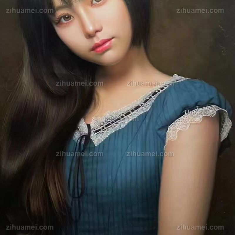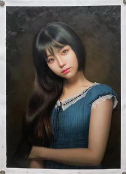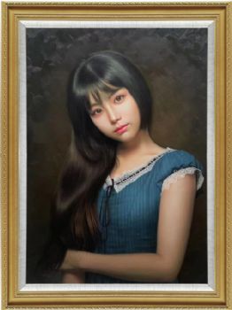 中式美女人物肖像图纯手绘人物油画写实美女图 手绘