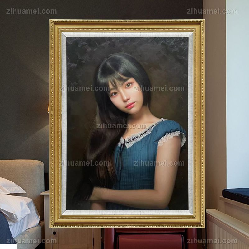 • 纯手绘人物油画美女图肖像油画金色实木画框