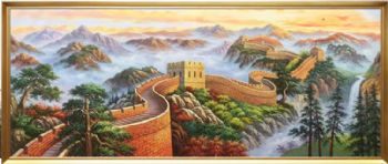 基业长青新中式手绘长城风景油画实木画框 手绘
