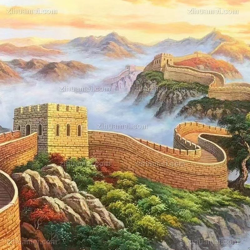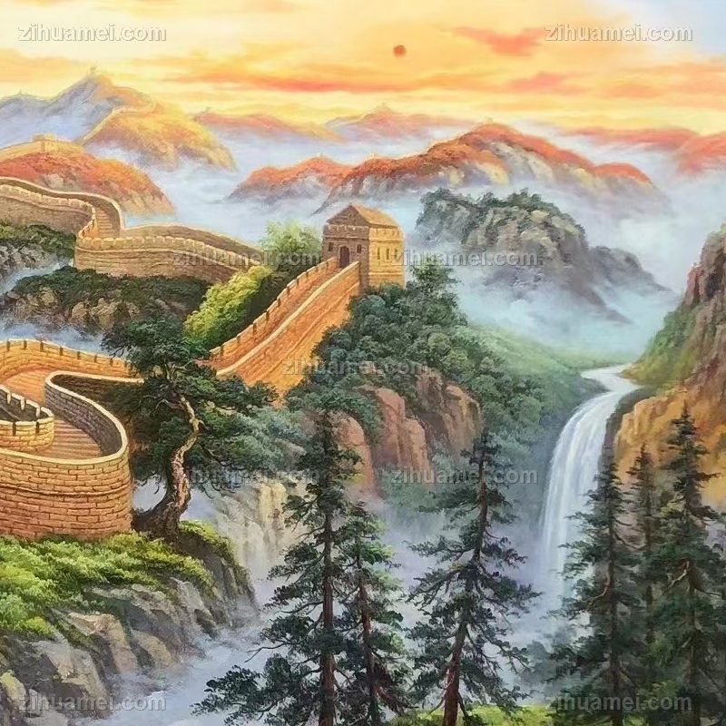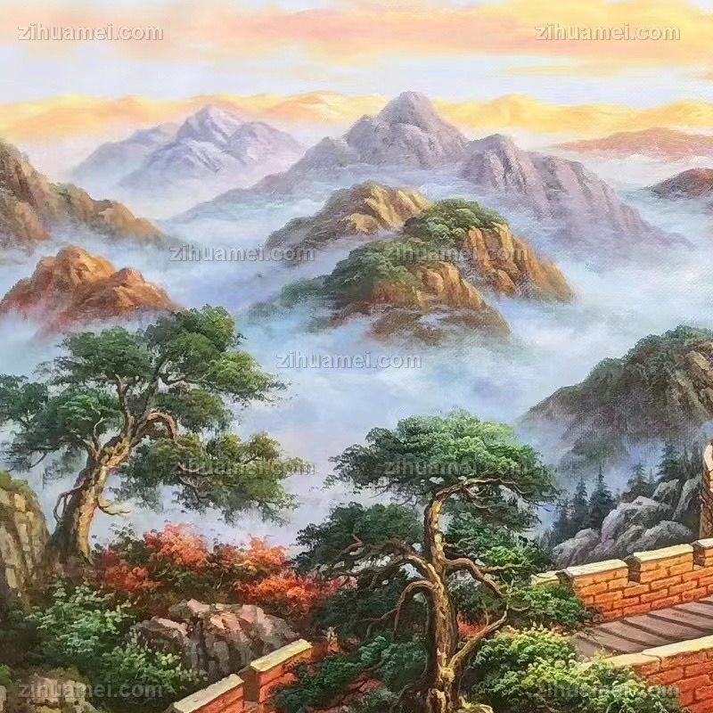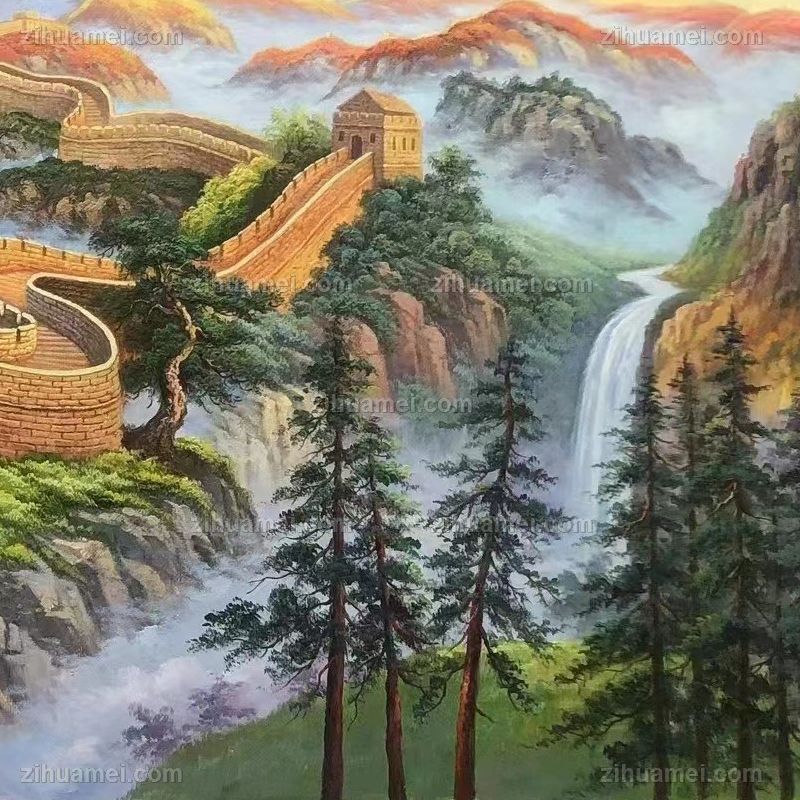 新中式长城风景油画纯手绘工笔写实油画 手绘