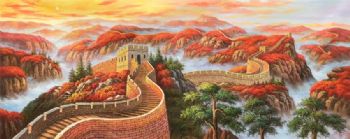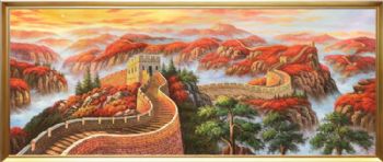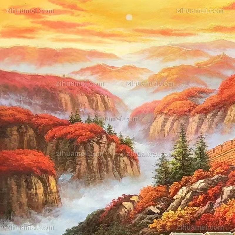 • 江山一片红新中式长城风景油画鸿运当头纯手绘油画