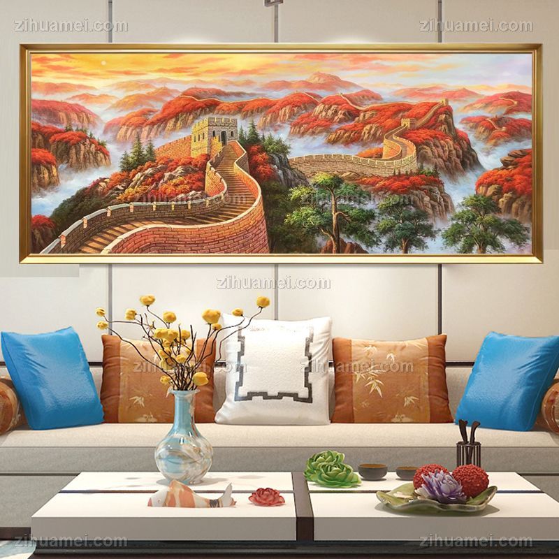 基业长青新中式手绘长城风景油画实木画框 手绘