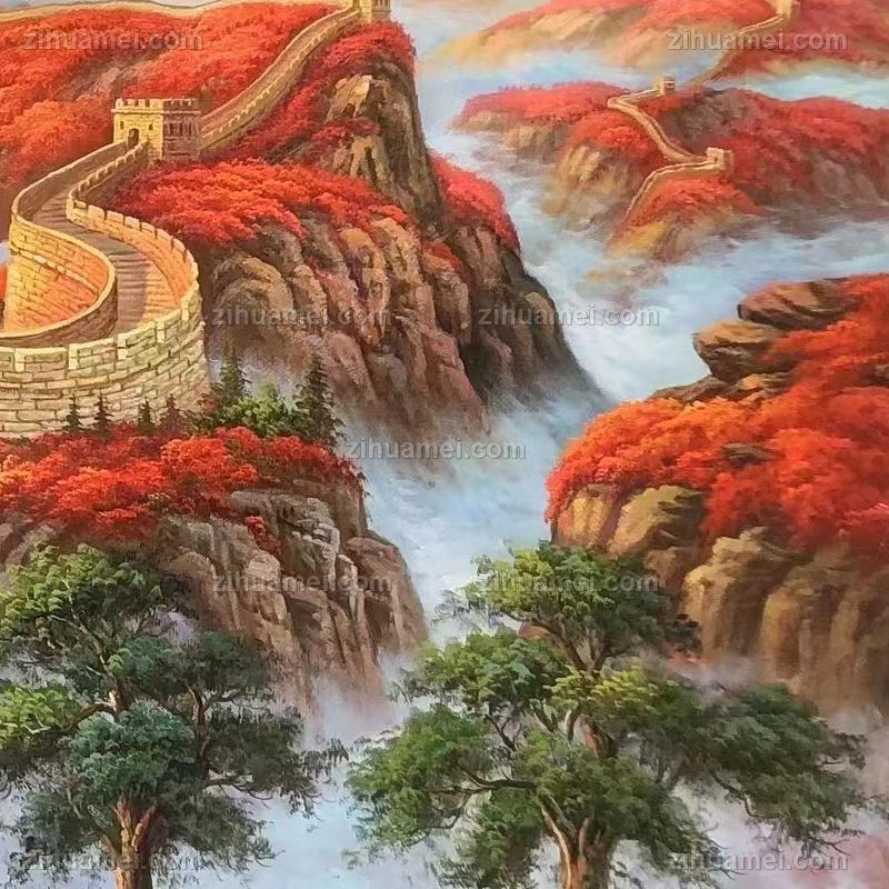 新中式长城风景油画纯手绘工笔写实油画 手绘
