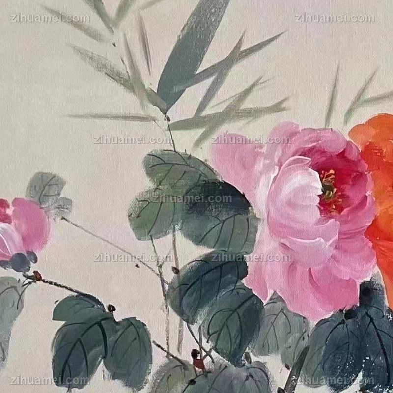 纯手绘国画工笔四尺竖幅牡丹花卉国画玄关挂画 手绘