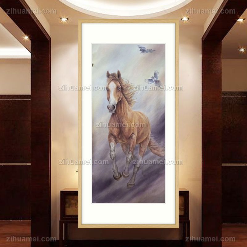 工笔动物写实水墨国画马到成功玄关走廊挂画 手绘