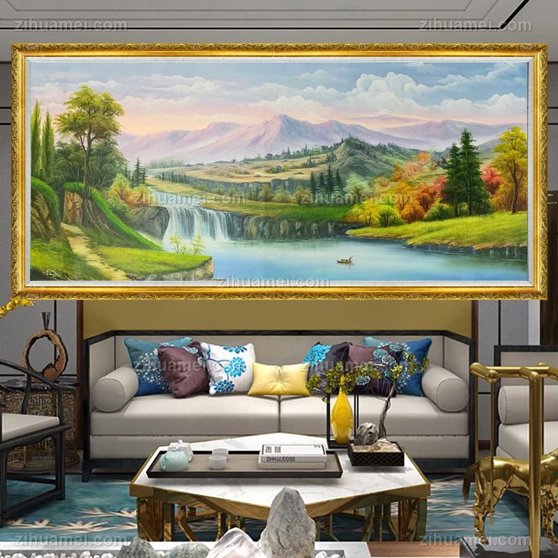 纯手绘风景油画山水画聚宝盆风景油画实木画框 手绘