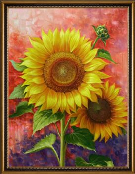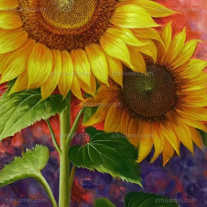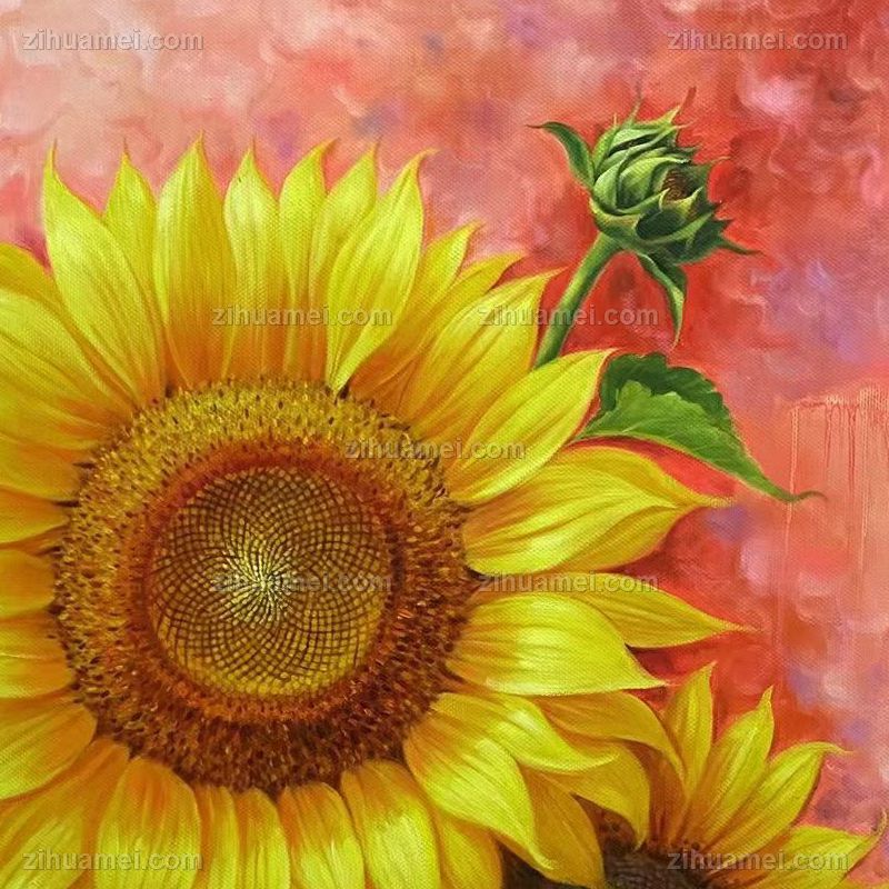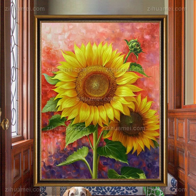 • 送晚辈书房挂画向日葵花卉油画