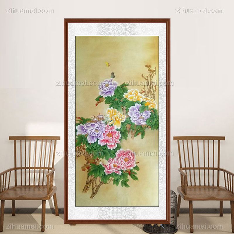 • 中式玄关花开富贵牡丹国画