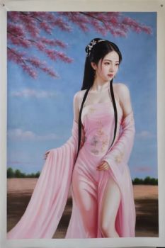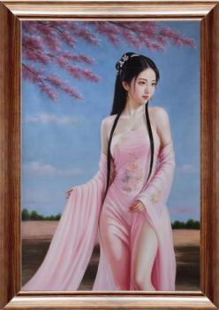 • 精品中式写实人物油画古典女装美女手绘油画人体艺术