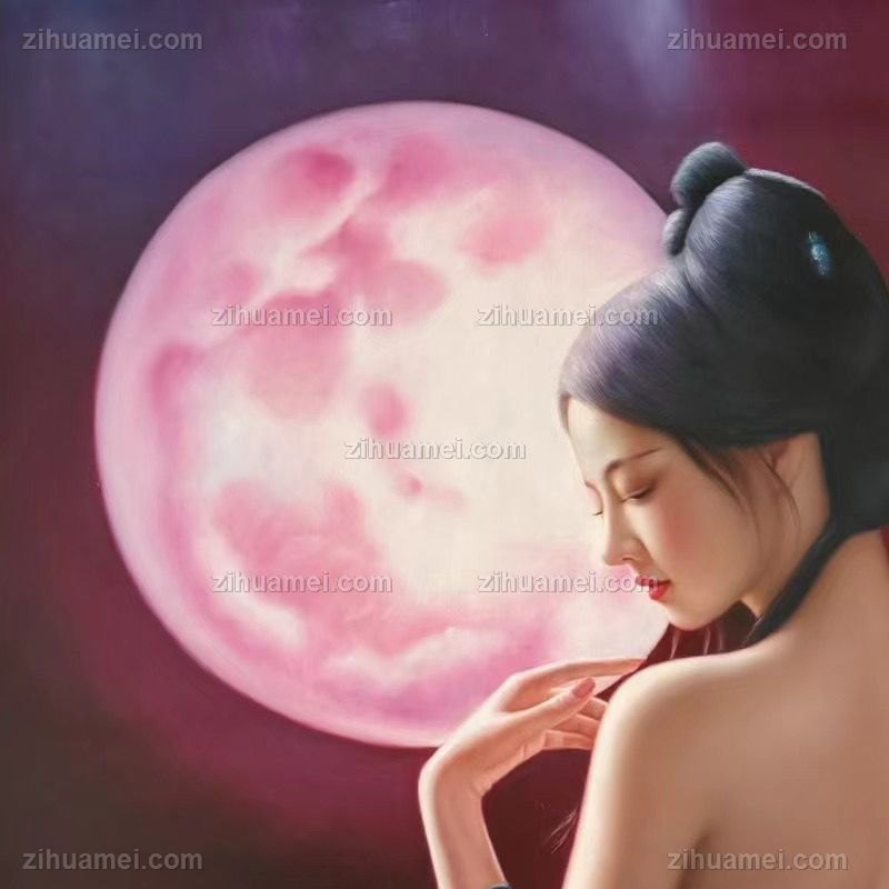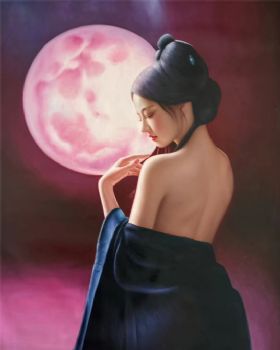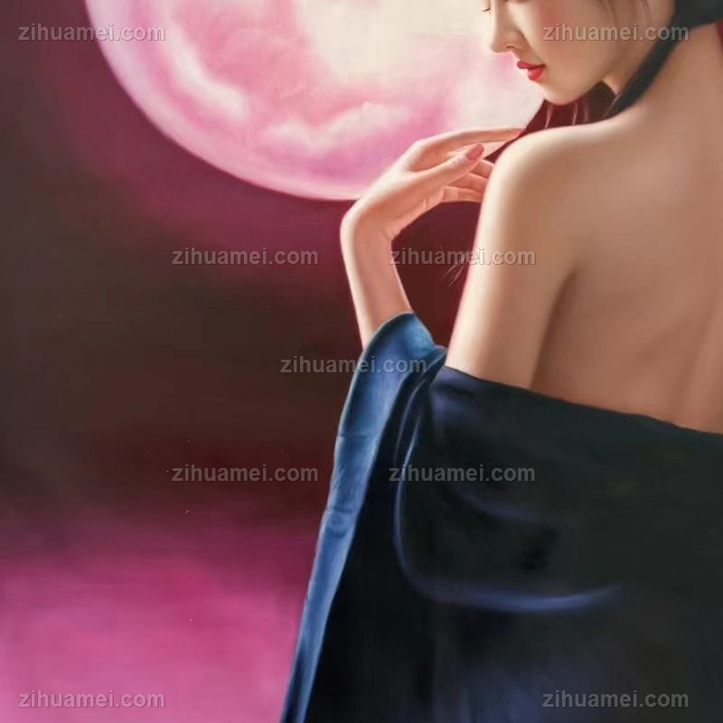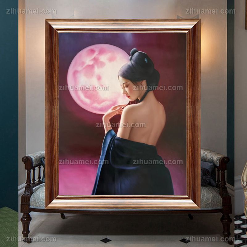 圆月下的美女图纯手绘古典美女人物油画 手绘