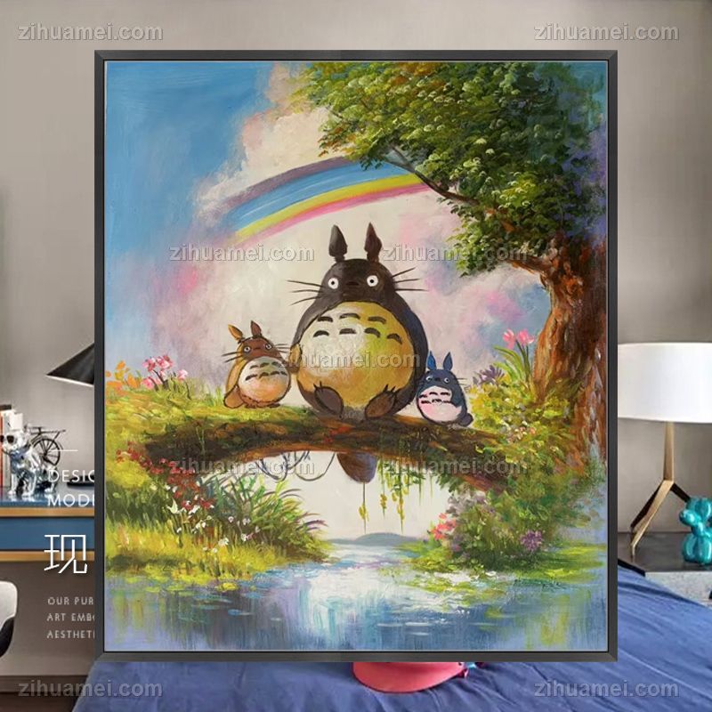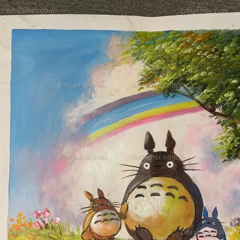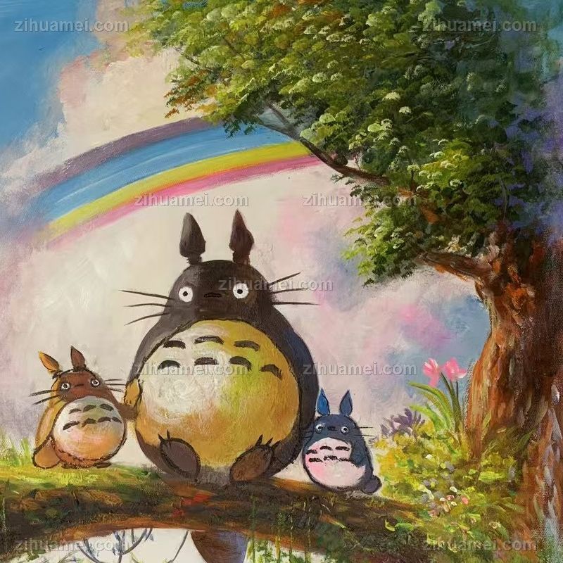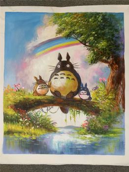 • 彩虹下的龙猫儿童卡通油画纯手绘油画