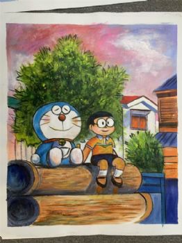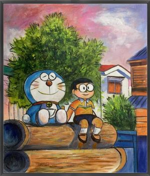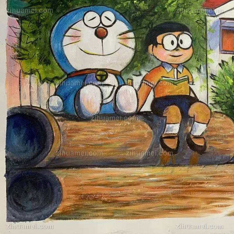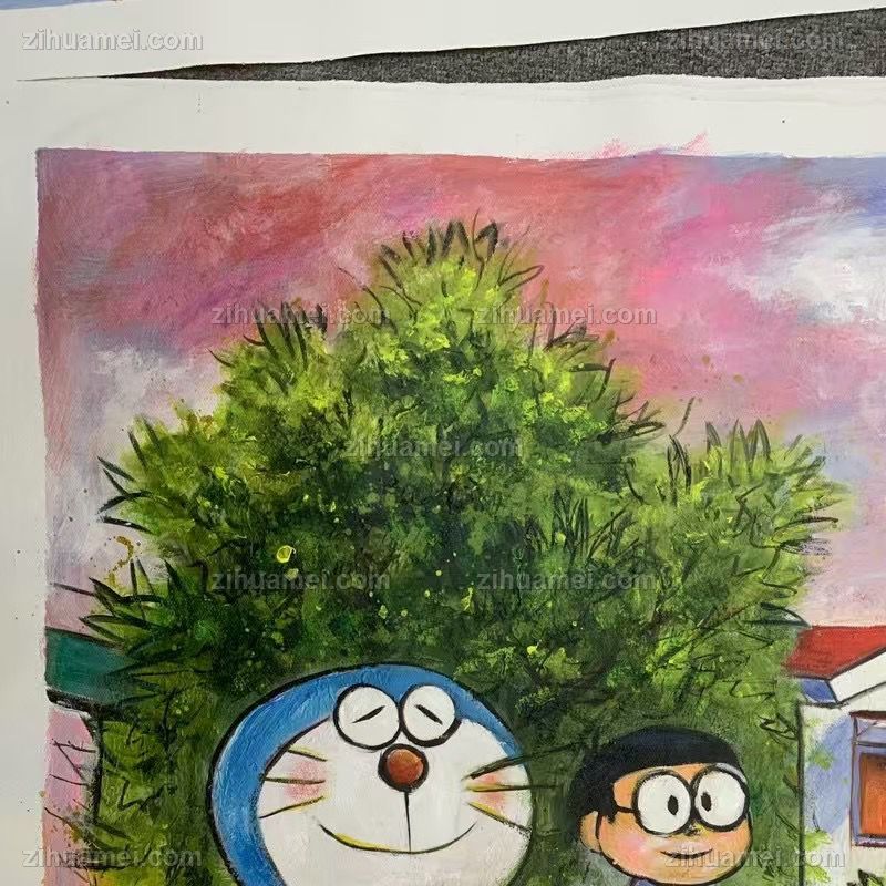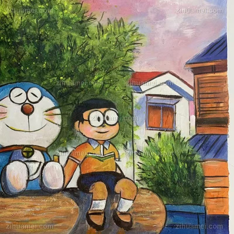 • 多拉A梦机器猫卡通油画纯手绘儿童油画