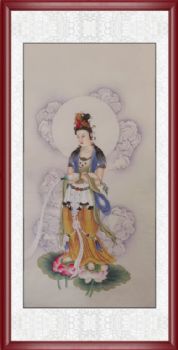 • 精品中式观世音菩萨纯手绘工笔国画人物画