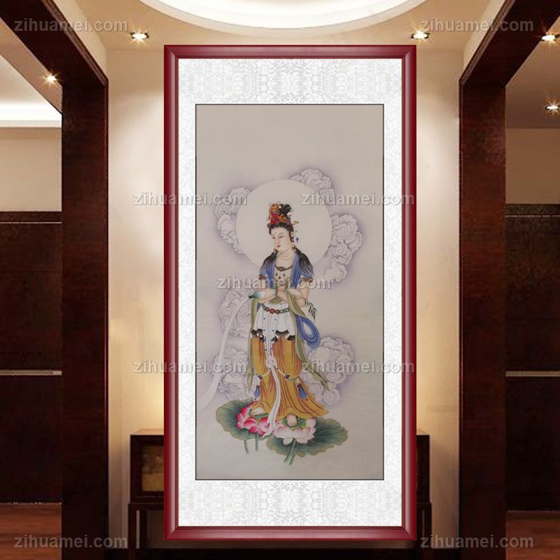 中堂挂画大慈大悲观世音菩萨纯手绘工笔国画 手绘