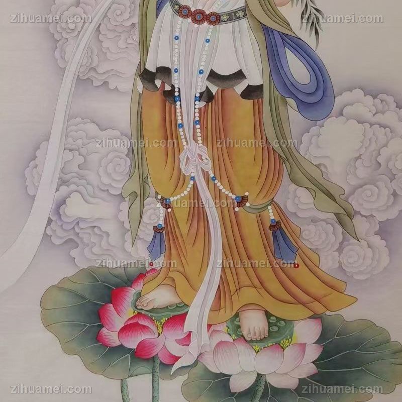 纯手绘工笔人物国画中堂挂画观世音菩萨像 手绘