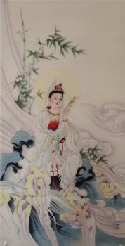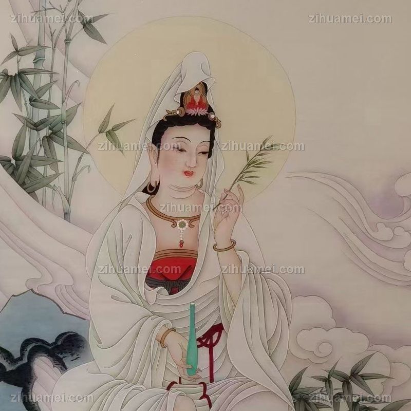 竹林里的观世音菩萨图纯手绘工笔国画人物国画 手绘