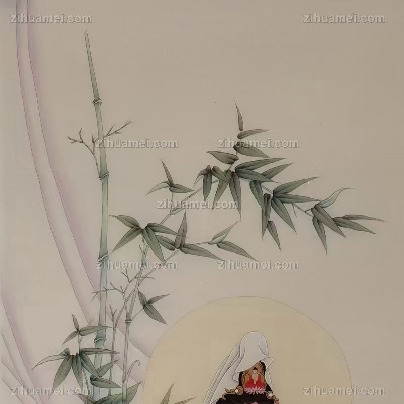 • 竹林里的观世音菩萨图纯手绘工笔国画人物国画