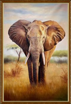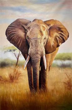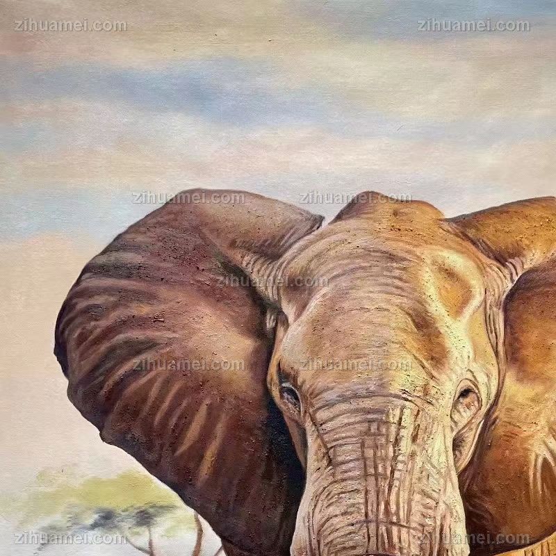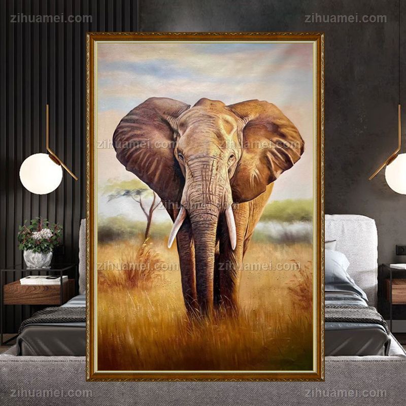 • 吉祥吉象如意纯手绘动物写实油画大象玄关办公室挂画