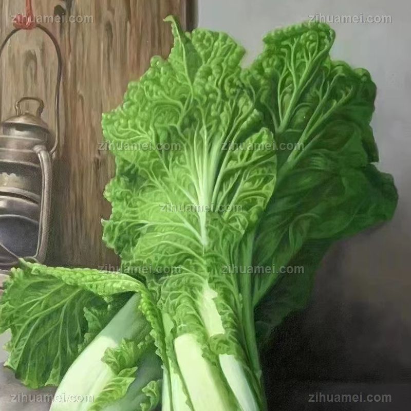 一棵大白菜玉米图发大财纯手绘写实静物油画 手绘