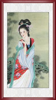 • 精品中式人物国画美女仕女图小四尺实木画框