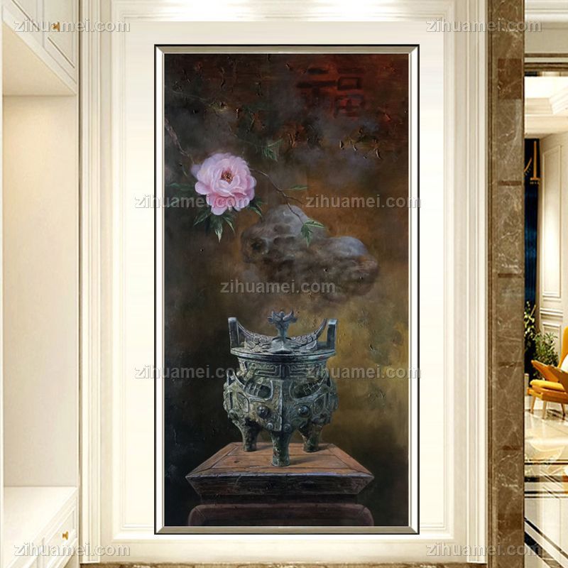 古典中式客厅玄关装饰画青铜器手绘油画 手绘