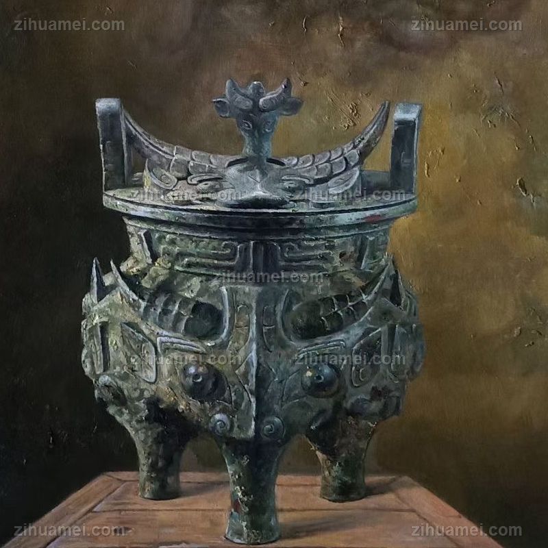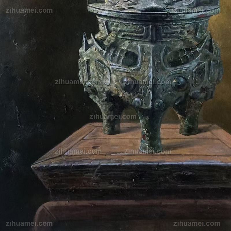 • 三足鼎青铜器花卉现代与经典静物写实油画