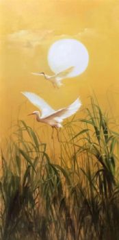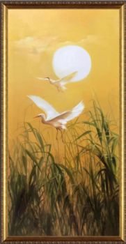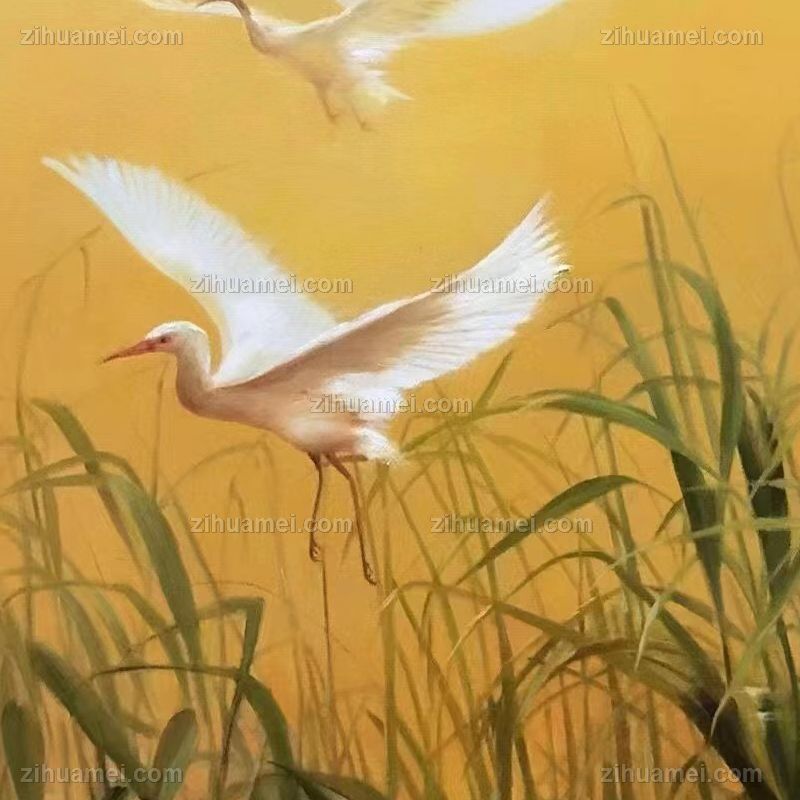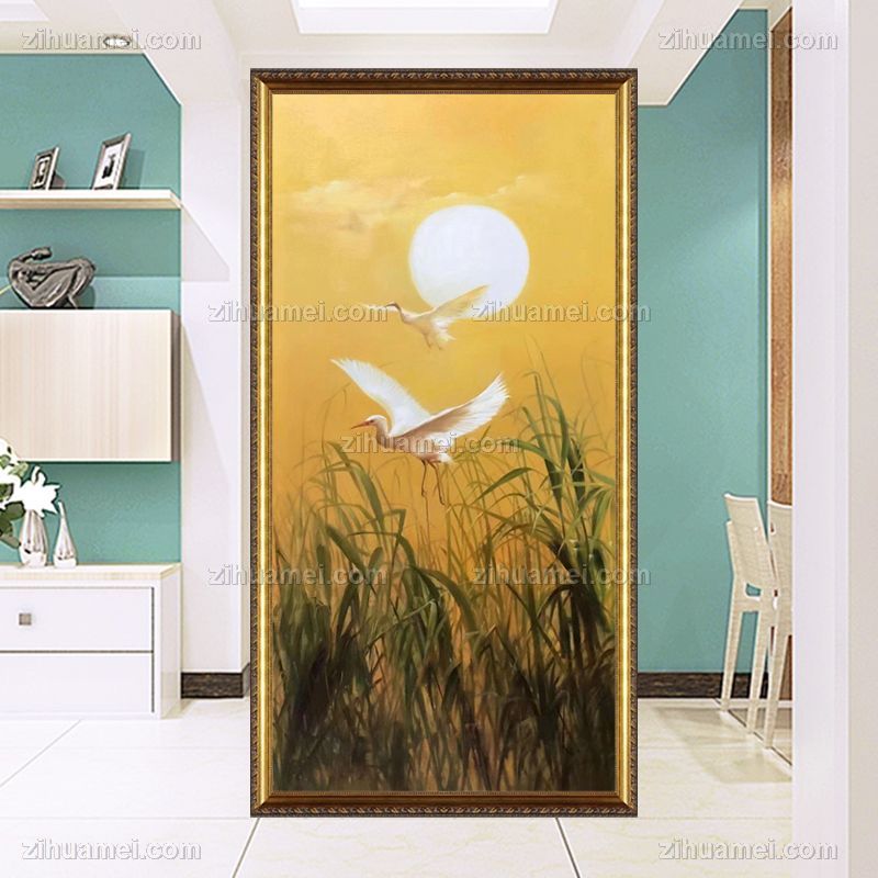 • 芦苇白鹤风景油画纯手绘油画新中式玄关精品油画