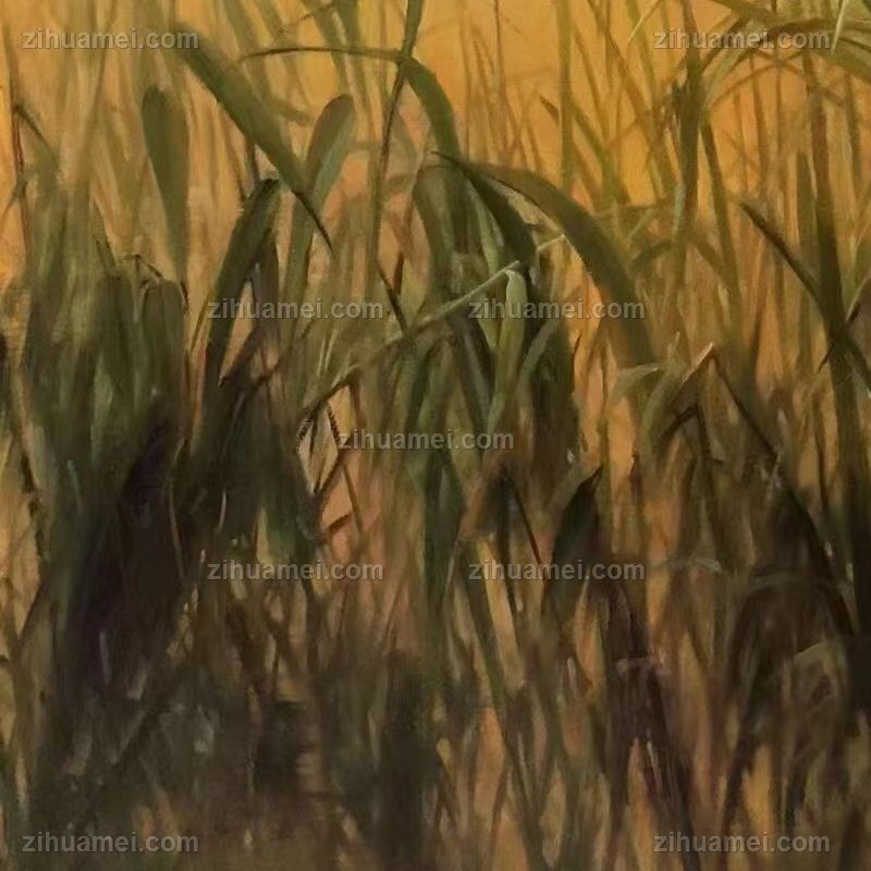 纯手绘写实芦苇风景油画