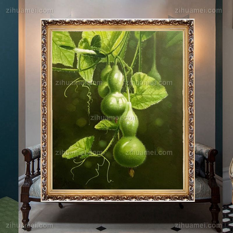 • 新中式静物写实油画纯手绘油画葫芦有福有禄实木画框