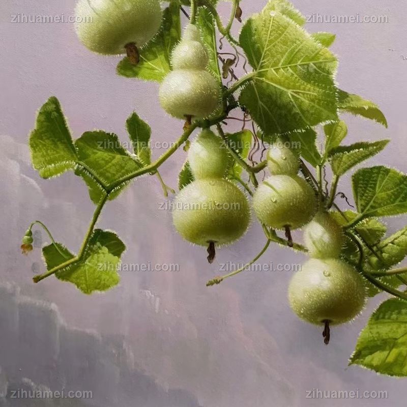• 五福临门福禄双全新中式葫芦写实油画纯手绘作品实木画框
