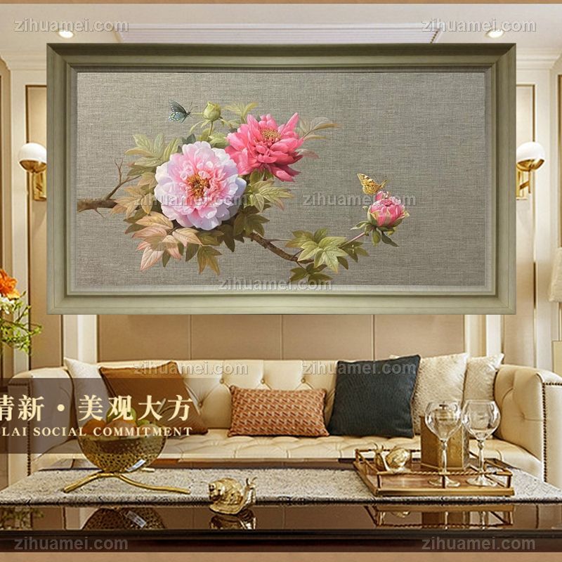 • 精品写实花卉油画纯手绘牡丹花油画横幅客厅挂画实木画框