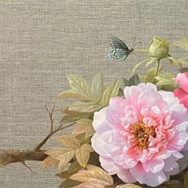 精品牡丹油画新中式纯手绘花卉油画实木画框 手绘