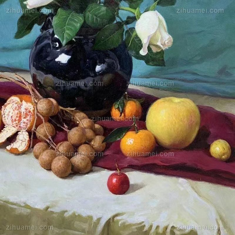 • 餐厅装饰画玫瑰水果静物油画