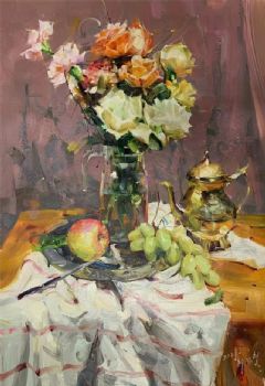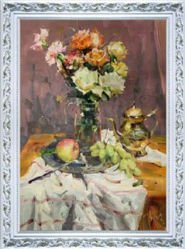 • 朝鲜油画印象静物花卉油画客厅餐厅挂画实木画框