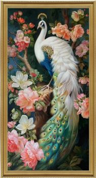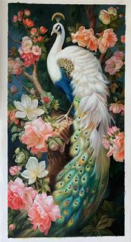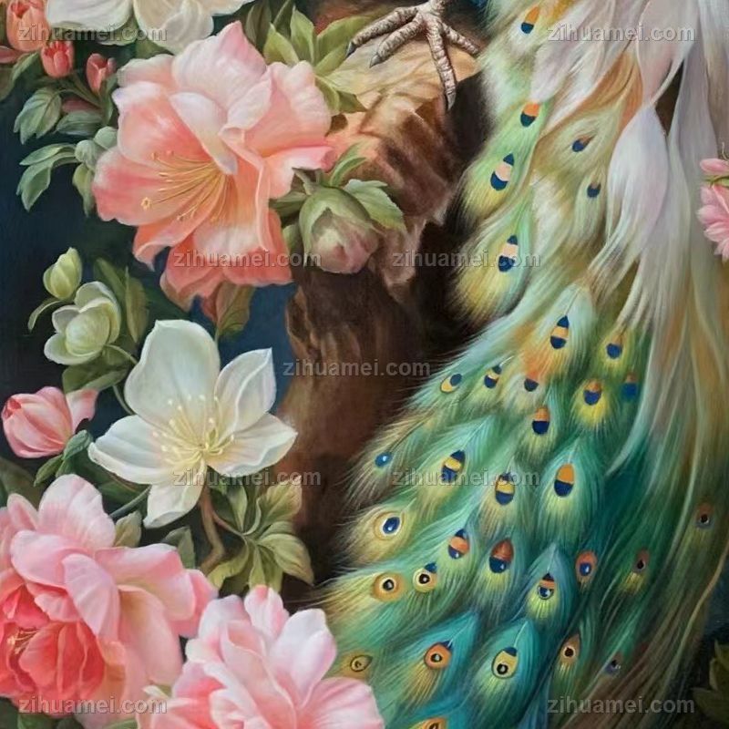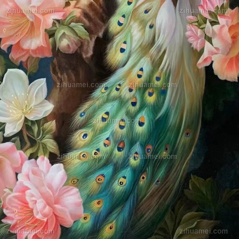 • 纯手绘动物油画白孔雀油画寓意富贵吉祥玄关油画实木画框