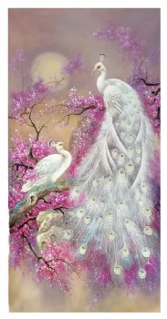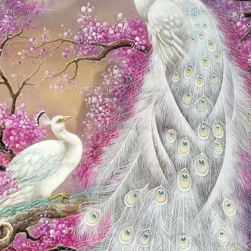 • 纯手绘孔雀油画白月光两只白孔雀寓意吉祥如意实木画框
