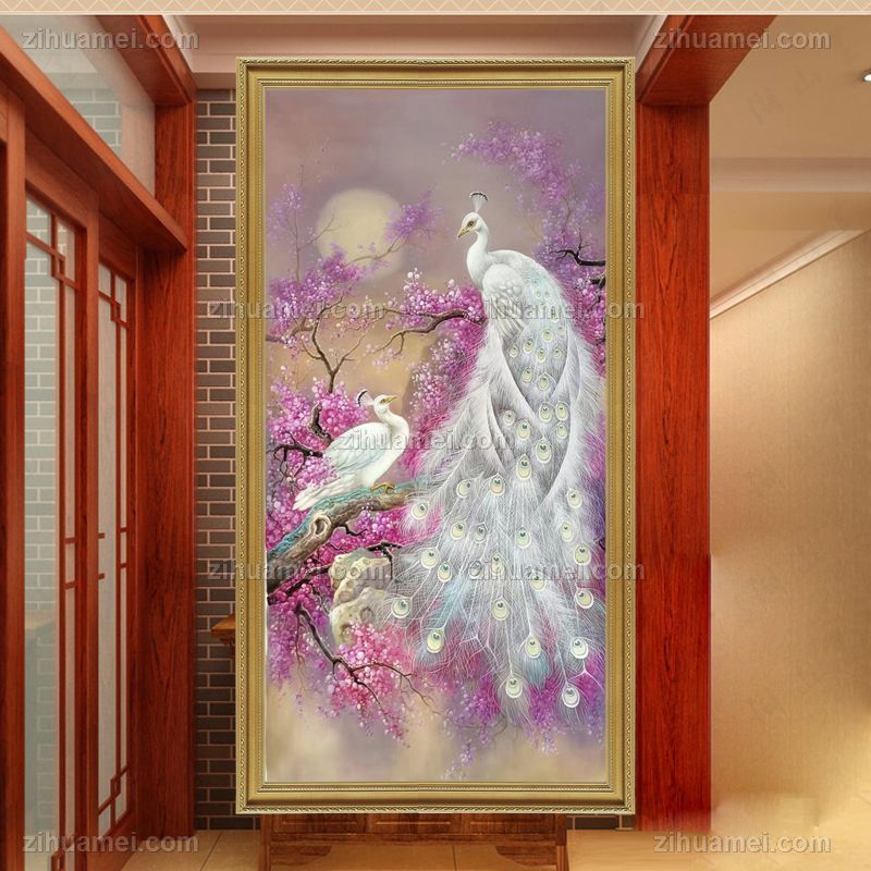 • 新中式玄关孔雀油画