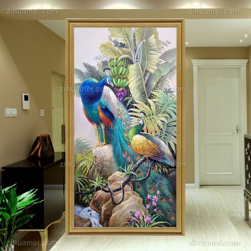 纯手绘孔雀图竹林孔雀节节高升幸福吉祥玄关挂画 手绘
